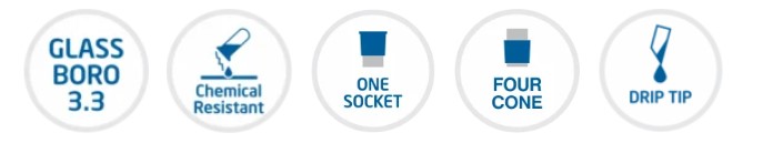 - Four cones encased with drip tip and one socket joint