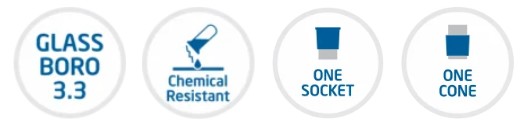 - Large sized socket at the top and smaller sized cone at the base to connect dissimilar size ground glass joints.