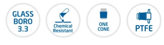 - With 2mm T-bore, PTFE key, stopcock
