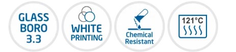 - Made from heat resistant ASTM E-438 Type 1, Boro 3.3 glass