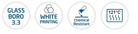 - Made from ASTM E-438 Type 1, Boro 3.3 heat resistance glass