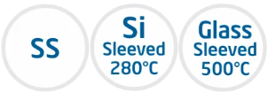 - Silicon sleeved for temp upto 280° C