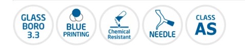 • Compliance with DIN/ISO 385 and USP standard