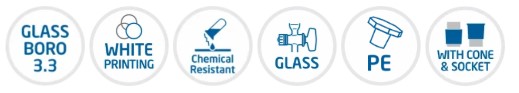 - Made from DIN ISO 3585, BORO 3.3 GLASS