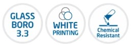 - All the flasks are printed in durable white enamel