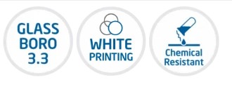 - Made from heat resistant ASTM E-438 Type 1, Boro 3.3 glass