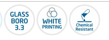 - Made from heat resistant ASTM E-438 Type 1, Boro 3.3 glass