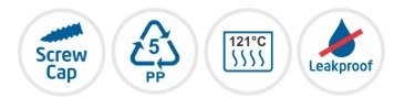 - Has leakproof screw cap threaded