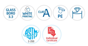 - Made as per ASTM E-288, Boro 3.3 glass