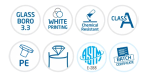 - Made as per ASTM E-288, Boro 3.3 glass